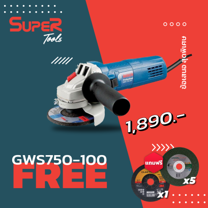 BOSCH เครื่องเจียร์ 4 นิ้ว 750 วัตต์ รุ่น GWS 750-100 ซื้อสินค้าตอนนี้รับฟรี ใบตัด LONEWELL จำนวน 5 ใบ และ ใบตัน 3M จำนวน 1 ใบ