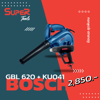 BOSCH เครื่องเป่าลม GBL 620 + KRESS เป่าลมร้อน KU041 พิกัดกำลังไฟ 620 W ความเร็วรอบขณะเดินเครื่องเปล่า 16000 รอบ/นาที กำลังไฟ : 2,000 วัตต์