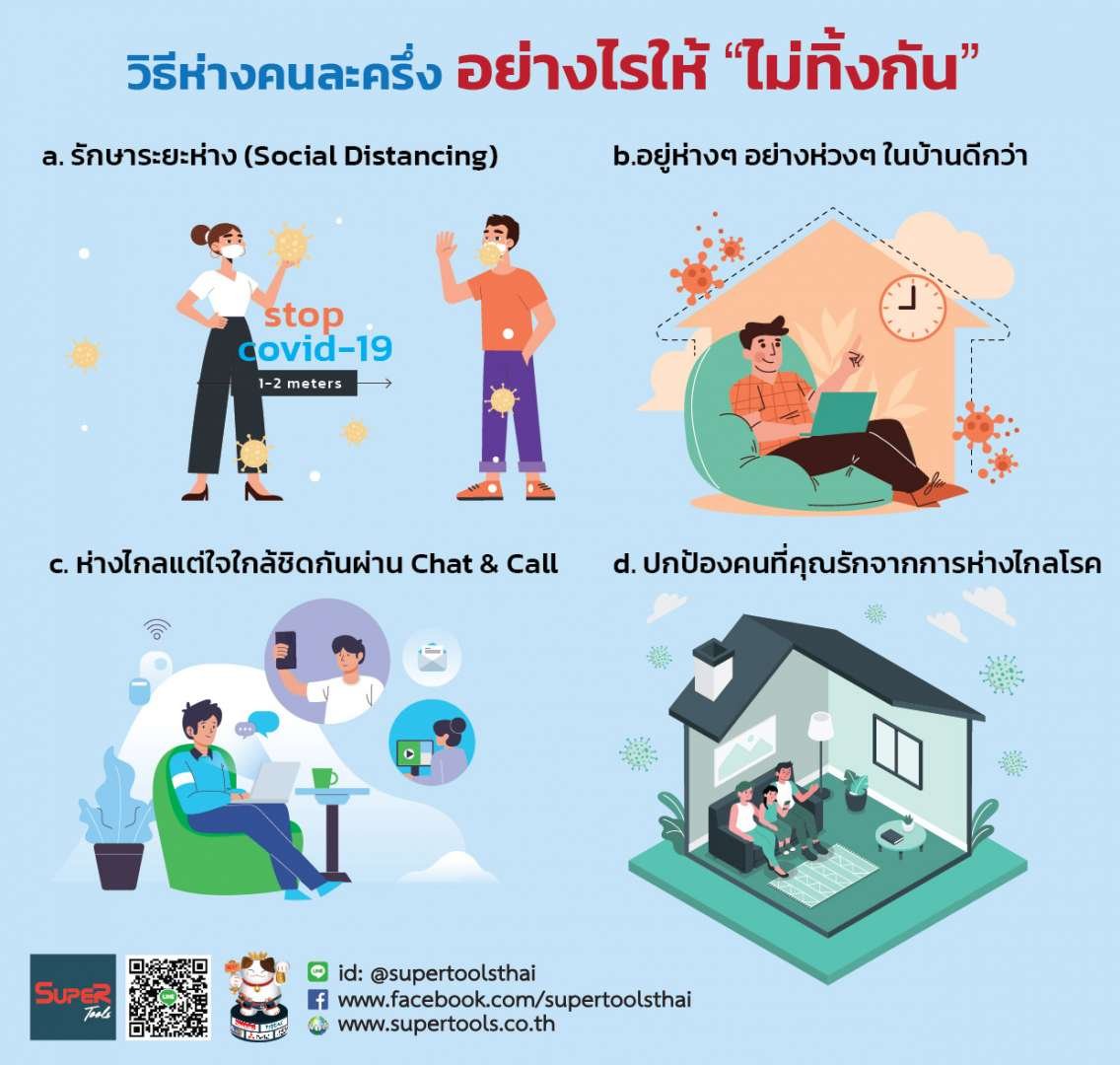 แม้สถานการณ์ ‘โควิด’ จะเริ่มซาลง แต่ล่าสุดก็มิวายให้พวกเราต้องตกอกตกใจเมื่อได้รับข่าวคราวโควิดระบาดอีกระลอก ทำให้ต้องพักอยู่บ้าน ‘หยุดเชื้อ เพื่อชาติ’ ไปตาม ๆ กัน แม้จะอยู่ในบ้านก็มิวายให้หวาดหวั่นตามกันว่าภายในบ้านของเรานั้นมีเชื้อโควิดปนเปื้อนหรือ จะหันไปทางใดก็หวาดกลัวไปเสียหมด ในวันนี้ Supertools มีเคล็ดลับดี ๆ จะนำเสนอ 4 วิธีห่างกัน ‘คนละครึ่ง’ อย่างไรให้ ‘เราไม่ทิ้งกัน’