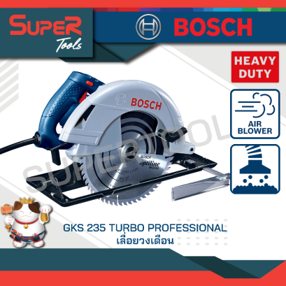 BOSCH เลื่อยวงเดือน 9 นิ้ว 2,050 วัตต์ รุ่น GKS 235 Turbo ความเร็วรอบขณะเดินเครื่องเปล่า: 5,300 รอบ/นาที เส้นผ่าศูนย์กลางใบเลื่อย: 235 มม.